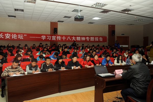 12月5日下午,我院在圖書館報(bào)告廳舉辦青年大講堂和長(zhǎng)安論壇講座,專題學(xué)習(xí)宣傳十八大精神。院黨委副書記左曉民做客論壇,為廣大學(xué)生黨員干部作了題為《抓住主線、學(xué)懂弄通、重在落實(shí)》的專題報(bào)告。報(bào)告由我院機(jī)關(guān)黨總支、社科聯(lián)、團(tuán)委聯(lián)合舉辦。院團(tuán)委副書記蔣正治主持報(bào)告。