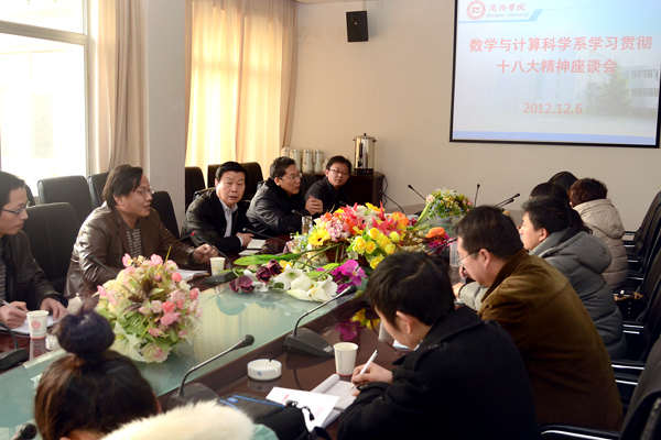 12月6日下午,數(shù)學(xué)與計算科學(xué)系黨總支中心學(xué)習(xí)組舉辦學(xué)習(xí)黨的十八大精神座談會。院黨委副書記、院長張景書出席座談會并講話。數(shù)學(xué)與計算科學(xué)系黨總支副書記趙健主持座談。