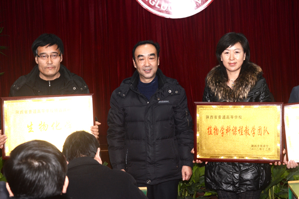 在莊重的樂(lè)曲聲中,院領(lǐng)導(dǎo)分別為專業(yè)綜合試點(diǎn)改革項(xiàng)目生物技術(shù)專業(yè)、省級(jí)精品課程《生物化學(xué)》、省級(jí)教學(xué)團(tuán)隊(duì)植物學(xué)科課程教學(xué)團(tuán)隊(duì)、省級(jí)人才培養(yǎng)模式創(chuàng)新實(shí)驗(yàn)區(qū)生物技術(shù)專業(yè)人才培養(yǎng)模式創(chuàng)新實(shí)驗(yàn)區(qū)、大學(xué)生校外實(shí)踐教育基地建設(shè)項(xiàng)目商洛學(xué)院-陜西鋅業(yè)有限公司理科實(shí)踐教育基地等省級(jí)本科教學(xué)工程項(xiàng)目授牌;為獲得2012年院級(jí)教學(xué)名師、院級(jí)精品課程、教學(xué)技能競(jìng)賽優(yōu)勝者、優(yōu)秀實(shí)習(xí)指導(dǎo)教師、優(yōu)秀教案獎(jiǎng)及優(yōu)秀電子課件獎(jiǎng)獲獎(jiǎng)集體和個(gè)人頒獎(jiǎng)。