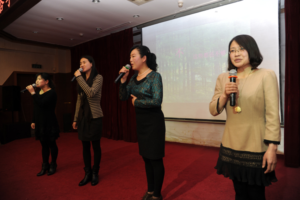 左曉民現(xiàn)場(chǎng)表演了歌曲合唱《十五的月亮》,向全院女教職工送上了節(jié)日的祝福。