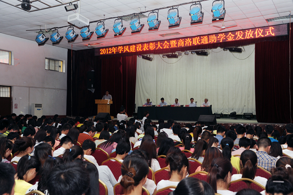 為了進(jìn)一步推進(jìn)學(xué)風(fēng)建設(shè)和學(xué)生自主創(chuàng)業(yè)工作,營(yíng)造良好的育人氛圍,5月22日下午,我校隆重召開(kāi)學(xué)風(fēng)建設(shè)表彰大會(huì),對(duì)2012年度國(guó)家獎(jiǎng)學(xué)金、國(guó)家勵(lì)志獎(jiǎng)學(xué)金獲獎(jiǎng)學(xué)生進(jìn)行表彰,對(duì)田亦柏等5名自主創(chuàng)業(yè)大學(xué)生進(jìn)行獎(jiǎng)勵(lì),對(duì)2012年學(xué)風(fēng)建設(shè)先進(jìn)集體進(jìn)行表彰,同時(shí)為程時(shí)妍等20名2013年商洛聯(lián)通助學(xué)金受助學(xué)生發(fā)放了助學(xué)金。校黨委書記張繼良、院長(zhǎng)張景書,商洛聯(lián)通公司黨委書記溫長(zhǎng)山,校黨委副書記左曉民、副院長(zhǎng)劉建林出席大會(huì)。左曉民在會(huì)上宣讀了學(xué)校表彰決定,劉建林主持大會(huì)。