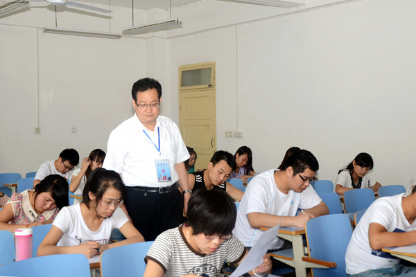 7月2日是本學(xué)期期末考試工作第一天,為嚴(yán)肅考風(fēng)考紀(jì),加強(qiáng)對考務(wù)工作的管理,上午8點20分,校領(lǐng)導(dǎo)張景書、左曉民、王思懷、陳永莊、劉建林、魏書堂在學(xué)校辦公室和教務(wù)處相關(guān)負(fù)責(zé)人的陪同下,視察了期末考試工作情況。