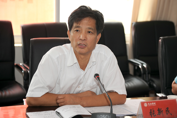 張景書代表學校對張新民一行來我校進行專題考察調(diào)研表示熱烈的歡迎,感謝省教育廳長期以來對我校建設發(fā)展的關心和支持。他表示,張新民總會計師一行來基層了解情況、解決實際問題,為我校開展黨的群眾路線教育實踐活動樹立了榜樣。