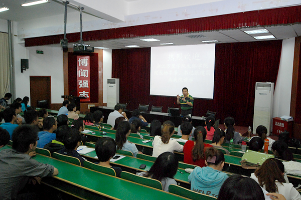 在報(bào)告會(huì)上,楊季芳從師資情況、科研項(xiàng)目、培訓(xùn)特色等方面向我校學(xué)生介紹了生環(huán)學(xué)院的基本情況和2014年工程碩士(生物工程領(lǐng)域)招生簡(jiǎn)介。他說,生環(huán)學(xué)院的主要培養(yǎng)方向?yàn)樗镂镔|(zhì)工程和海洋牧場(chǎng)、海洋生物資源與生物制品、食品化學(xué)與安全控制等三方面,具有良好的就業(yè)前景。希望我校學(xué)子明確考研目標(biāo),端正考研態(tài)度,積極報(bào)告浙江萬里學(xué)院生環(huán)學(xué)院。