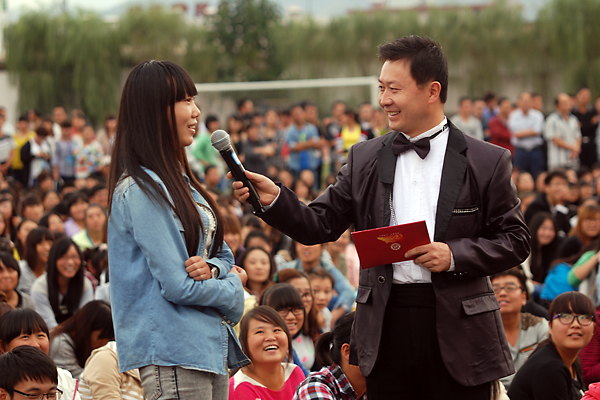 在節(jié)目中,主持人現(xiàn)場隨機采訪了兩位分別來自內蒙草原和河北承德的2013級新生。他們向現(xiàn)場師生介紹了自己的家鄉(xiāng),表達了對母校的熱愛之情。一位大二學生也登臺向學弟學妹們介紹了商洛本地名勝與特產。