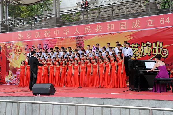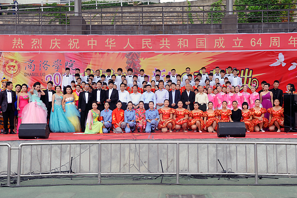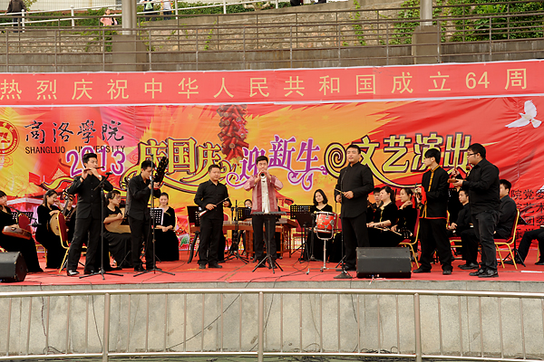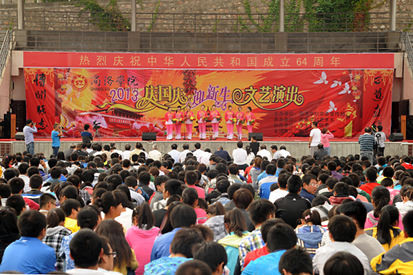 為慶祝新中國第64個生日,迎接2013級新生,9月26日下午,我校舉辦了“2013慶國慶·迎新生”大型文藝演出。西安音樂學院70余名師生應邀友情出演,和我校師生、商洛劇團青年歌手李淼輪番登臺獻藝,表演了民樂合奏、歌伴舞、獨唱、舞蹈、健身秧歌等19個節(jié)目。熱烈祥和的氣氛、清新高雅的藝術為校園帶來了節(jié)日的歡樂和文化的盛宴。
