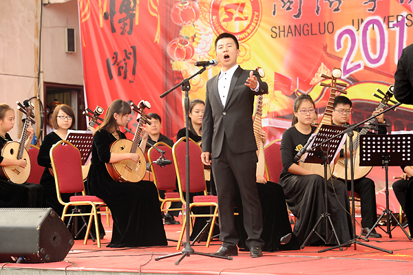 演出在西安音樂學院師生表演的民樂合奏《彩云追月》、《賽馬》、《射雕英雄傳》中拉開了序幕。小提琴獨奏《梁祝》選段婉轉的旋律、精彩的表演贏得陣陣掌聲;李淼曾在商洛舉辦的首次大型交響樂演唱會“永遠跟黨走”上唱響的《秦嶺最美是商洛》,展示了商洛優(yōu)美的自然環(huán)境和淳樸的風土人情;學院工會組織女教工表演了《健身秧歌》,以優(yōu)美的舞姿向全院師生展現(xiàn)了積極向上的生活態(tài)度;生物醫(yī)藥工程系學生表演的舞蹈《動感青春》展現(xiàn)了同學們蓬勃的朝氣;藝術系師生帶來的歌舞演奏節(jié)目充分展現(xiàn)了老師們精湛的技藝、藝術學子們的多才多藝;合唱《商洛學院校歌》、《歌唱祖國》唱出了我校師生熱愛學校、熱愛祖國的心聲。