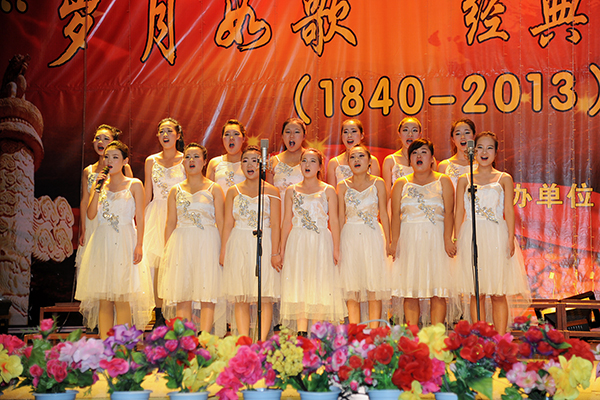 演唱會以“傳播正能量、唱響中國夢”為主題,分為“雄關漫道真如鐵”、“人間正道是滄?!焙汀伴L風破浪會有時”三個篇章。一曲《送別·長亭外》拉開了演唱會的序幕。該曲節(jié)奏時而舒緩,時而高亢,旋律婉轉悠揚,處處表達著對友人的深情厚誼、戀戀難舍的情感。接下來,同學們深情演唱了《月兒彎彎照九洲》《八月桂花遍地開》《映山紅》《十送紅軍》《過雪山草地》等多首經典歌曲。一曲《山丹丹花開紅艷艷》將演唱會推向高潮,現(xiàn)場掌聲雷動,《歌唱祖國》以激情澎湃的氣勢向我們傳遞著中華兒女對祖國的濃情厚意;《東方之珠》《七子之歌—澳門》仿佛緩緩訴說著祖國日益強大。最后,在一曲充滿濃情的《讓世界充滿愛》歌聲中,演唱會圓滿結束。
