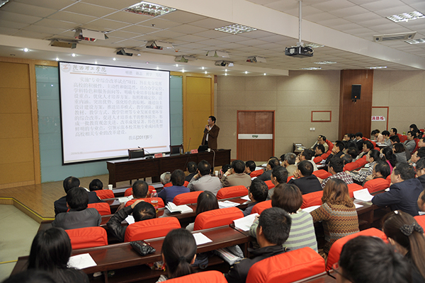 校領(lǐng)導(dǎo)張景書(shū)、左曉民、王思懷、魏書(shū)堂,各二級(jí)學(xué)院負(fù)責(zé)人、教學(xué)機(jī)構(gòu)負(fù)責(zé)人,全校副高職稱(chēng)及以上人員聽(tīng)取了報(bào)告。報(bào)告會(huì)由黨委副書(shū)記左曉民主持。