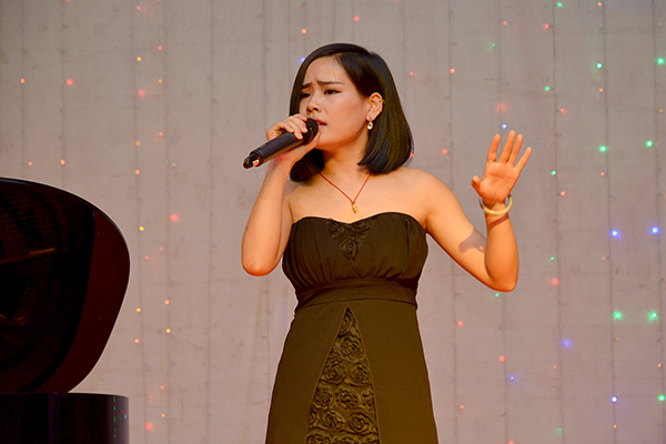 音樂學(xué)專業(yè)優(yōu)秀畢業(yè)生陳穎、竇貝貝、吳丹、強(qiáng)薇、郭敏、楊柳、褚瑤為大家?guī)砹司实谋硌??!段矣H愛的爸爸》旋律優(yōu)美,演唱深情動(dòng)人,描寫了少女勞萊達(dá)為追求愛情向爸爸懇求的場(chǎng)景;《讓我這樣看著你的樣子》生動(dòng)形象地講述了巴丹公主對(duì)花木蘭這位替父從軍的假小子投入愛慕之情的故事;《揚(yáng)鞭催馬運(yùn)糧忙》熱情明快,富有強(qiáng)烈的藝術(shù)感染力;二胡表演《奔馳在千里草原》描寫了牧民在草原上奔馳的情景,抒發(fā)了對(duì)未來幸福生活的向往;歌曲《我要我們?cè)谝黄稹沸?010級(jí)畢業(yè)生對(duì)自由對(duì)未來無限向往的心聲。