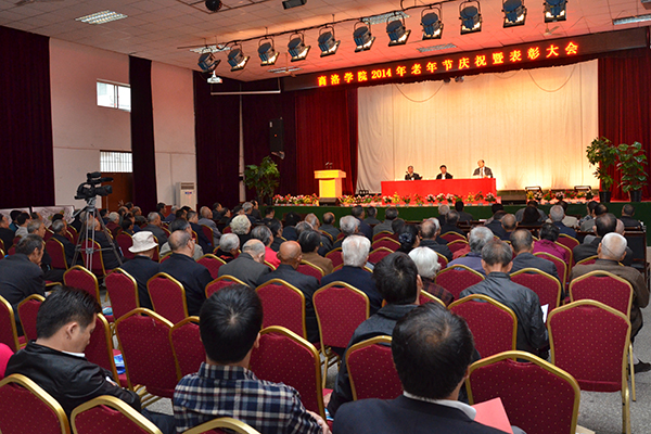在這金秋送爽、丹桂飄香的美麗季節(jié),我們迎來了一年一度的重陽節(jié)。為大力弘揚中華民族敬老、愛老、助老的傳統(tǒng)美德,讓離退休老同志度過一個歡樂祥和的老年節(jié),9月28日,我校舉辦“慶祝2014年老年節(jié)暨表彰大會”。校黨委書記張景書,黨委副書記、校長劉建林,紀委書記王思懷及相關(guān)職能部門負責人與離退休教職工們歡聚一堂,共度佳節(jié)。