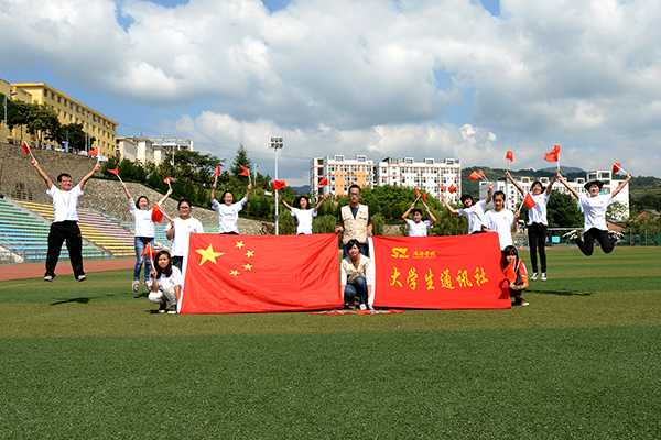 在中華人民共和國65周年華誕到來之際,有網(wǎng)友發(fā)起“我和國旗合個影,我為中國點個贊”活動,迅速燃起了網(wǎng)友們的愛國熱情,短短幾天內(nèi),該話題在微博上的閱讀量就超過6000萬。該活動在我校也受到熱捧。近日,我校大學生通訊社的同學們自發(fā)開展了“我與國旗合個影 我向祖國獻祝?!被顒?,拍攝并在微博上展示自己與國旗的合影,撰寫或轉(zhuǎn)發(fā)祝福祖國的話語,用鮮艷的五星紅旗、最美的笑臉、最真的祝福為祖國65周年生日華誕獻禮。