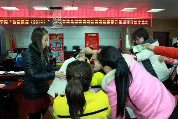 11月27日,我?!坝讕焽啵?014)”——陜西省幼兒園轉(zhuǎn)崗教師保教技能提升培訓(xùn)項(xiàng)目正在舉辦結(jié)業(yè)典禮,在得知王珍琪老師的患病消息后,學(xué)員們自發(fā)在結(jié)業(yè)典禮上進(jìn)行捐款,踴躍捐款的場(chǎng)景十分感人,短短幾十分鐘內(nèi)共籌集善款3338.7元。