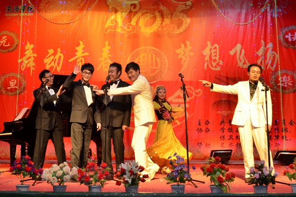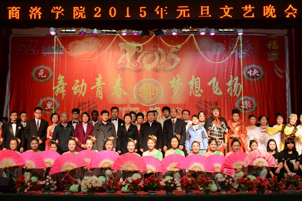 馬蹄留勝跡,羊毫譜新歌。12月30日晚,我校2015年度元旦文藝晚會在大學(xué)生活動中心隆重舉行。商洛市副市長劉榮賢,校黨委書記張景書、校長劉建林、黨委副書記左曉民、紀(jì)委書記王思懷、副校長魏書堂,商洛市教育局局長胡棟梁、共青團(tuán)商洛市委書記曹艷萍、商州區(qū)政府副區(qū)長楊俊芬,商洛供電局、中國銀行商洛分行、中國建設(shè)銀行商洛分行、中國郵政商洛分公司、中國移動商洛分公司、中國聯(lián)通商洛分公司、中國電信商洛分公司、商洛市劇團(tuán)、中國移動商州分公司有關(guān)領(lǐng)導(dǎo)同師生們一起觀看了演出。