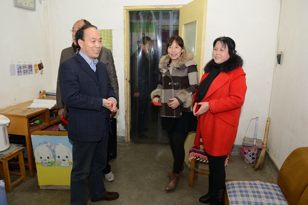 在學(xué)校辦公室、保衛(wèi)處、后勤保障處負(fù)責(zé)人的陪同下,彭虎軍先后前往各處門衛(wèi)、教學(xué)樓、公寓、圖書館、體育場(chǎng)值班室,后勤保障處公寓服務(wù)中心、水電班,保衛(wèi)處警務(wù)室、監(jiān)控室等一線崗位,與工作人員親切握手,代表學(xué)校黨政向大家拜年,對(duì)堅(jiān)守在工作崗位上的工作人員表示感謝,并親手送上節(jié)日慰問品。在慰問中,彭虎軍詳細(xì)詢問了各部門的工作情況,要求每位工作人員在春節(jié)期間一定要把安全穩(wěn)定放在首位,保證在校師生度過一個(gè)溫暖、祥和的春節(jié)。