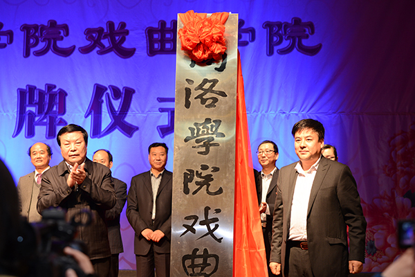 3月31日晚,由我校與商洛市劇團聯(lián)合成立的商洛學(xué)院戲曲學(xué)院揭牌儀式在市劇團小劇場隆重舉行。我校80屆校友、陜西省政府副秘書長、省政府機關(guān)事務(wù)局局長孟軍,商洛市政府副市長劉榮賢出席揭牌儀式,共同見證這一校地合作的盛事。我校黨委書記張景書、商洛市文廣新局局長周云岳為戲曲學(xué)院揭牌,我校副校長范新會、商洛市劇團團長李小斌簽署聯(lián)合成立商洛學(xué)院戲曲學(xué)院協(xié)議書,商洛市文廣新局局長周云岳代表鑒證方在協(xié)議書上簽字。揭牌儀式由校紀(jì)委書記王思懷主持。