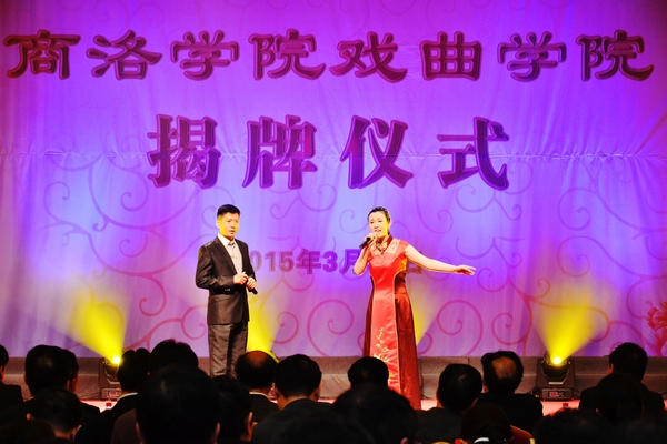商洛市人民政府副市長劉榮賢代表商洛市委市政府對商洛學(xué)院戲曲學(xué)院的成立表示熱烈祝賀,對廣大藝術(shù)工作者和長期支持商洛市文化教育事業(yè)發(fā)展的各界朋友表示衷心感謝。她在講話中說,商洛學(xué)院戲曲學(xué)院的成立是商洛文化與教育融合發(fā)展的一大喜事,也是商洛戲曲藝術(shù)發(fā)展的一件盛事,商洛素有“戲曲之鄉(xiāng)”的美譽,推出了眾多藝術(shù)精品,受到了黨和國家領(lǐng)導(dǎo)人的高度評價,擴大了商洛戲曲在全省全國的影響力,豐富了廣大人民群眾的精神生活。她指出,戲曲學(xué)院是認(rèn)真學(xué)習(xí)、貫徹落實習(xí)近平總書記在文藝工作座談會上的講話精神和習(xí)近平總書記來陜視察講話精神的有力舉措,對推動商洛市地方文化的發(fā)展,推動商洛地方特色文化進校園進教室進課堂、培養(yǎng)高素質(zhì)的戲曲專業(yè)人才、不斷提高商洛戲曲藝術(shù)發(fā)展水平有著十分重大的意義。她要求,商洛學(xué)院、商洛市文廣局、商洛市劇團要齊心協(xié)力辦好戲曲學(xué)院,努力實現(xiàn)教學(xué)研究與戲曲的發(fā)展共贏,把商洛市戲曲藝術(shù)的發(fā)展推向一個更高的水平;充分發(fā)揮和利用好戲曲學(xué)院這個平臺,積極投身于商洛學(xué)院戲曲藝術(shù)的研究教育和發(fā)展,不斷弘揚社會主義核心價值觀,挖掘地方文化特色,為文化強市和建設(shè)幸福商洛做出貢獻。