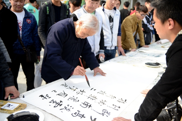 筆會上,商洛學院書法家協(xié)會主席李尚民,陜西毛體書法藝術研究院副院長劉全民,商山書畫院院長張東海,商洛市老年大學校長崔學民,陜西書畫院商洛分院副院長殷寶喜,商洛市文藝評論家協(xié)會主席李中合等老中青藝術家揮毫潑墨、題字作畫,成為校園里一道靚麗的風景線。