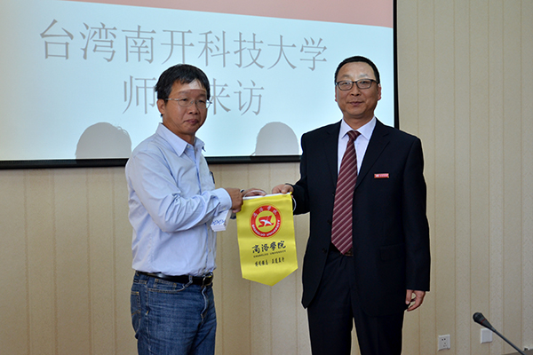 劉寶盈對臺灣師生的到來表示熱烈歡迎,并介紹了我校的基本概況。他指出,臺灣南開科技大學(xué)師生是我校迎來的首批臺灣交流師生,真正實現(xiàn)了兩校交流的互訪,臺灣南開科技大學(xué)與我校的教學(xué)理念、辦學(xué)定位相似,希望兩校能進(jìn)一步加強(qiáng)合作交流,促進(jìn)共同發(fā)展。