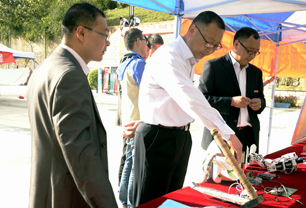 為營造良好的學(xué)術(shù)文化氛圍,提升我校校園文化品位,搭建青年學(xué)子成長成才的平臺,更好地服務(wù)于應(yīng)用型本科院校的建設(shè),5月11日,由校團委主辦,教務(wù)處、科研處、學(xué)生處、9個學(xué)院共同協(xié)辦,以“分享?進步?創(chuàng)新”為主題的第二屆科技文化節(jié)在北新街校區(qū)文化廣場開幕。校黨委副書記彭虎軍、副校長劉寶盈等參觀了作品展覽并進行了現(xiàn)場指導(dǎo)。