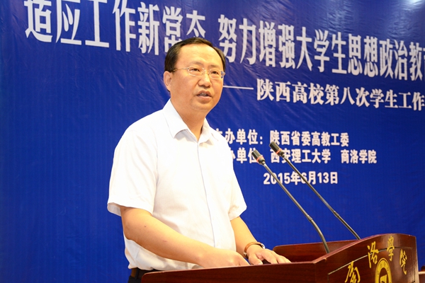6月13日,由陜西省委高教工委主辦,西安理工大學(xué)與我校共同承辦的陜西高校學(xué)生工作論壇在我校舉辦。陜西省委高教工委副巡視員高巍,省委高教工委學(xué)工部部長田民正,省委高教工委團工委書記兼學(xué)工部副部長郭強,省高教工委學(xué)工部副處級調(diào)研員魏星,西安理工大學(xué)黨委副書記崔亦國,西安石油大學(xué)黨委副書記雷西合,商洛學(xué)院校長劉建林,商洛學(xué)院黨委副書記彭虎軍等出席論壇。來自我省77所高校的110多位學(xué)工部長等參加論壇。開幕式由西安理工大學(xué)學(xué)工部部長馬福主持。