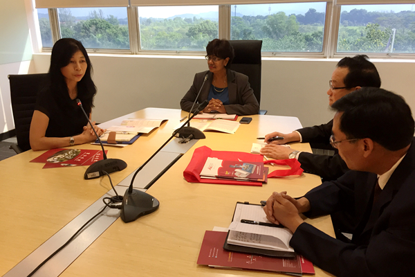6月18日,副校長(zhǎng)魏書(shū)堂、干部人事處處長(zhǎng)高榮發(fā)一行應(yīng)邀赴馬來(lái)西亞吉隆坡建設(shè)大學(xué)進(jìn)行交流訪問(wèn),馬來(lái)西亞吉隆坡建設(shè)大學(xué)副校長(zhǎng)克里斯汀教授親切會(huì)見(jiàn)了魏書(shū)堂等一行。