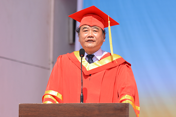 生物醫(yī)藥與食品工程學(xué)院郭耀東博士代表教師發(fā)言,向畢業(yè)生們送上了美好的祝福和囑托。他希望同學(xué)們養(yǎng)成獨(dú)立思考的習(xí)慣,不斷培養(yǎng)獨(dú)立思考的能力;牢記母?!安┞剰?qiáng)志,正道直行”的校訓(xùn),敢于擔(dān)當(dāng)、腳踏實(shí)地、開拓進(jìn)取。世界那么大,需要你們?nèi)タ纯矗瑫r(shí)希望你們作為母校的使者,向世界傳遞商洛學(xué)院的聲音!