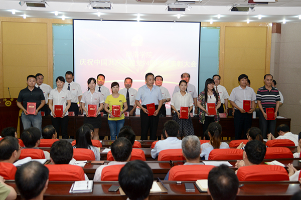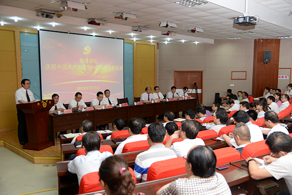 張景書在講話中回顧了中國共產(chǎn)黨誕生94年來走過的光輝歷程、執(zhí)政66年以來的取得的偉大成就。從“堅(jiān)持社會(huì)主義辦學(xué)方向,深入開展黨的群眾路線教育活動(dòng),細(xì)化黨風(fēng)廉政建設(shè)責(zé)任措施,加強(qiáng)思想政治教育,重視安全穩(wěn)定工作”等方面總結(jié)了學(xué)校黨的建設(shè)的主要成果。
