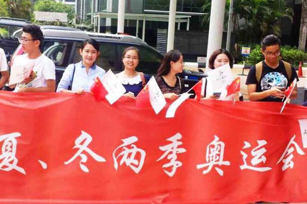 “今天是激動而又有意義的一天!接大使館通知,我們作為學(xué)生代表歡迎歡送我們國家的代表!”我校學(xué)子魏淑娟向?qū)W校發(fā)展規(guī)劃與合作交流處趙子越老師發(fā)來消息說:“我們早上10:30到達會場(KLCC TRADERS HTOEL),11:30左右,我們國家的代表,國務(wù)院副總理劉延?xùn)|、國家體育總局局長劉鵬、北京市市長王安順、中國殘奧委會主席張海迪、北京冬奧申委總策劃部副部長楊瀾、北京2022形象大使著名籃球運動員姚明等到達現(xiàn)場,我們負責(zé)歡迎,然后領(lǐng)導(dǎo)人給我們打招呼問好緊接著進入會場,一個小時后會議結(jié)束,我們再次歡送”?!霸趪獠拍苷嬲靼孜覀冇卸鄲圩约旱膰?,多愛自己的母校,并且為之驕傲!今后我會更加努力、精益求精,在有限的時間里做自己最喜歡和熱愛的事,為祖國發(fā)展建設(shè)事業(yè)添磚加瓦!”魏淑娟說,想想2022年冬季奧林匹克運動會“我或許已經(jīng)成家了,也許那個時候我還會驕傲的告訴身邊人,七年前我還在吉隆坡申奧現(xiàn)場為國家申奧吶喊助威了呢!”