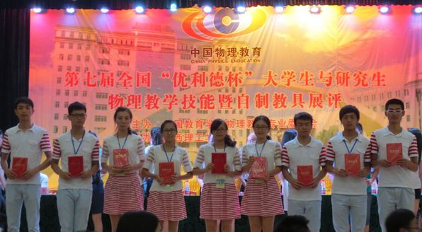 在為期一天半的展示活動中,來自全國各高校的661名選手(本科生583名,研究生78名)參加了教學(xué)技能展示、276項(xiàng)實(shí)驗(yàn)參加了自制教具與設(shè)計(jì)實(shí)驗(yàn)展示。我校學(xué)生韓生虎制作的《平拋運(yùn)動演示儀》,李磊、魏建偉、李云靜等制作的《電與磁的相互作用演示儀》獲得自制教具展評類一等獎,并與華南師范大學(xué)、陜西師范大學(xué)等全國知名院校學(xué)生作品聯(lián)合被推薦進(jìn)行展評;周新凱制作的《滑輪組合演示儀》獲得教具類二等獎;在物理教學(xué)技能展評活動中,我校學(xué)生宋丹獲得一等獎,孫亮獲得二等獎,劉馨、唐習(xí)哲、吳婷、劉玲玲獲得三等獎。