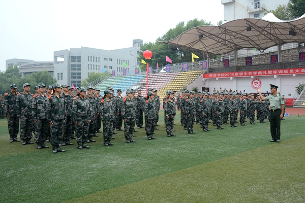 在校歌《正道直行做棟梁》激昂的歌聲中,大會宣告結(jié)束。2015級全體新生在教官的指導下開始了為期兩周的大學軍訓生活。