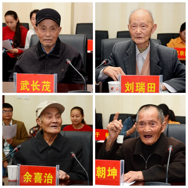 武長(zhǎng)茂、劉瑞田、余喜治、程朝坤等4位抗戰(zhàn)老兵佩戴勛章現(xiàn)身我校,師生們目睹了英雄們的真容。他們都已過(guò)耄耋之年,其中武長(zhǎng)茂老人還是坐著輪椅來(lái)到現(xiàn)場(chǎng)的,但老兵們依然精神矍鑠。余喜治老人用鏗鏘有力的聲音激動(dòng)地講述了他的參戰(zhàn)經(jīng)歷:"我是1939年2月被拉的壯丁,被分在國(guó)民黨38軍,軍長(zhǎng)是趙青山。到部隊(duì)后3個(gè)月我就上了前線,在日占區(qū)內(nèi)我親眼看到日軍燒殺搶掠,一場(chǎng)戰(zhàn)斗下來(lái)我們160多人就只剩下30多人。我們經(jīng)歷過(guò)戰(zhàn)爭(zhēng)的殘酷,希望現(xiàn)在全國(guó)人民團(tuán)結(jié)一心建設(shè)富強(qiáng)的祖國(guó)。"在回答心理學(xué)專業(yè)1301魏忠杰同學(xué)有關(guān)抗戰(zhàn)時(shí)期軍隊(duì)是如何訓(xùn)練的問(wèn)題時(shí),劉瑞田老人說(shuō),談不上什么訓(xùn)練,上午學(xué)文化,下午練瞄準(zhǔn),但因?yàn)槿鄙購(gòu)椝?,自己在?xùn)練中沒(méi)有打過(guò)一槍。