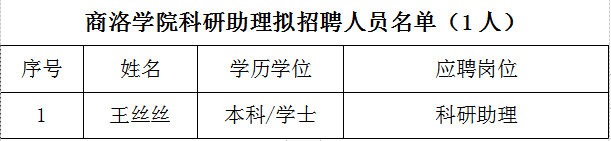 根據(jù)《關于公開招聘科研助理的通知》,經過資格審查、專家面試等環(huán)節(jié)考察,根據(jù)項目具體需要,擬聘用王絲絲同志為我校非事業(yè)編制聘用人員,現(xiàn)予以公示。如有異議,請于2020年12月12日前向科技處、人事處反映。