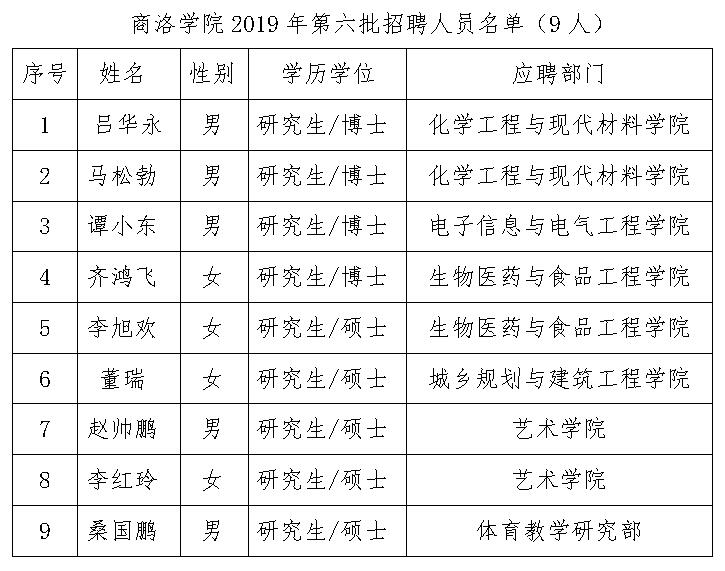 附件:商洛學(xué)院2019年第六批招聘人員名單