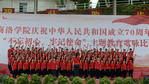 “憶往昔崢嶸歲月,抒今朝愛(ài)國(guó)情懷?!?月25日下午,我校慶祝中華人民共和國(guó)成立70周年暨“不忘初心、牢記使命”主題教育歌詠比賽在校體育場(chǎng)舉辦。校領(lǐng)導(dǎo)龍治剛、范新會(huì)、彭虎軍、劉寶盈、劉勇出席活動(dòng)并與師生同臺(tái)竟唱。全體教職工和2019級(jí)學(xué)生4000余人觀看了比賽。11支代表隊(duì)用優(yōu)美的旋律和嘹亮的歌聲謳歌中國(guó)共產(chǎn)黨帶領(lǐng)全國(guó)人民走過(guò)的波瀾壯闊的70年光輝歷程,表達(dá)對(duì)祖國(guó)母親的熱愛(ài)與祝福。