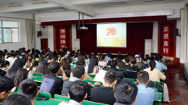 10月1日上午,舉世矚目的慶祝中華人民共和國(guó)成立70周年大會(huì)、閱兵式、群眾游行在北京天安門廣場(chǎng)隆重舉行。我校廣大師生通過(guò)網(wǎng)絡(luò)、電視、廣播等媒體收看收聽(tīng)活動(dòng)盛況,黨委副書(shū)記彭虎軍和師生代表在學(xué)校報(bào)告廳集中收看了直播?;顒?dòng)結(jié)束后,師生們難抑激動(dòng)之情、自豪之感,紛紛熱議習(xí)近平總書(shū)記重要講話,爭(zhēng)相表達(dá)對(duì)祖國(guó)母親的深情祝福和奮斗新時(shí)代的堅(jiān)定信心。