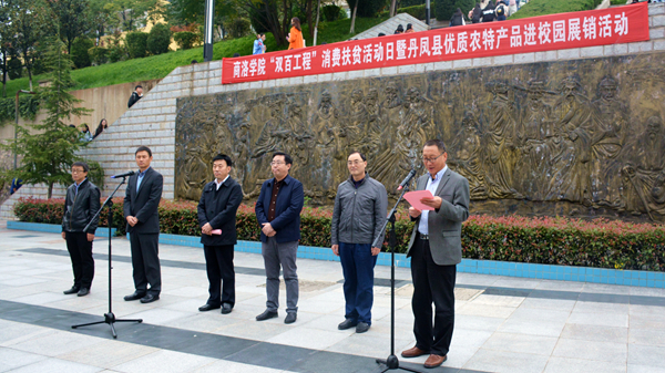 10月17日,時值第6個國家扶貧日和第27個國際消除貧困日,為進一步推進“雙百工程”脫貧攻堅活動深入開展,號召全校師生投身脫貧攻堅熱潮之中,我校與丹鳳縣人民政府聯(lián)合舉辦了“商洛學(xué)院‘雙百工程’消費扶貧暨丹鳳縣優(yōu)質(zhì)農(nóng)特產(chǎn)品進校園”展銷活動。校黨委副書記彭虎軍、丹鳳縣副縣長郝新軍出席活動啟動儀式并講話,副校長劉寶盈主持儀式,副校長劉勇出席。我校相關(guān)職能部門負責人、教師代表,丹鳳縣教科體局、農(nóng)業(yè)農(nóng)村局負責人等參加活動啟動儀式。