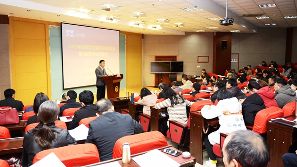12月26日,校黨委召開2019年基層黨組織書記抓黨建述職評議考核大會,黨委書記龍治剛、黨委副書記彭虎軍、副校長劉寶盈、副校長王新軍、副校級領導王思懷出席會議,黨委委員、黨群部門負責人、各黨總支書記、各黨支部書記、各二級學院行政負責人、市級及以上“兩代表一委員”及部分黨員代表參加了會議。會議由彭虎軍主持。