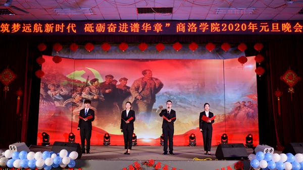 12月26日晚,我?!爸暨h航新時代,砥礪奮進譜華章”2020年元旦晚會在大學(xué)生活動中心舉辦。校黨委書記龍治剛、黨委副書記彭虎軍、副校長劉寶盈、副校長王新軍、副校級領(lǐng)導(dǎo)王思懷,商洛市委宣傳部副部長、市委文明辦主任李丹峰,團市委書記王小寧,國網(wǎng)商洛供電公司、中國電信商洛分公司、中國移動陜西有限公司商州分公司、中國聯(lián)通商洛分公司、中國郵政集團公司商洛市分公司、陜西君威集團等單位負責(zé)人及相關(guān)人員,與全校500余名師生代表一同觀看了演出。