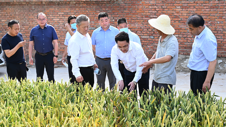 會(huì)后,張志昌與黃鵬一行實(shí)地察看了學(xué)校體溫檢測(cè)門(mén)使用情況、5G影院建設(shè)情況,前往小麥試驗(yàn)田現(xiàn)場(chǎng)看望慰問(wèn)了我校育種專家、高級(jí)實(shí)驗(yàn)師于浩世,并進(jìn)行了深入交流。