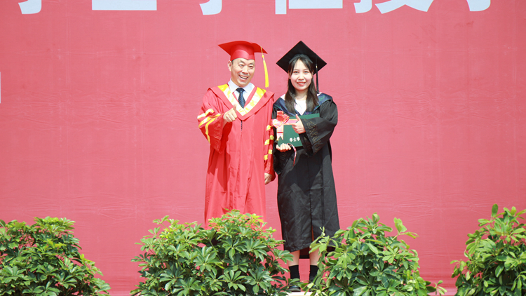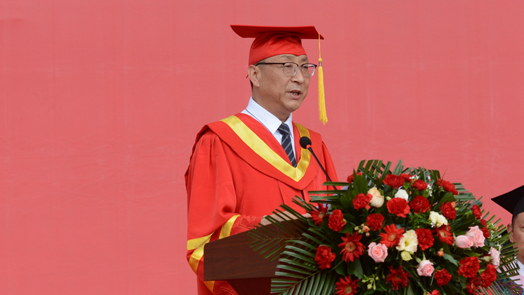 城鄉(xiāng)規(guī)劃與建筑工程學院張孝存教授作為教師代表發(fā)言。他希望同學們在未來的人生道路上,要牢記“博聞強志 正道直行”的校訓,堅守承擔、承受、承認、誠實,始終心懷希望,揚長避短,勇于探索,不負熱愛,積極尋找事業(yè)成功的希望,積極尋找人生幸福的希望。