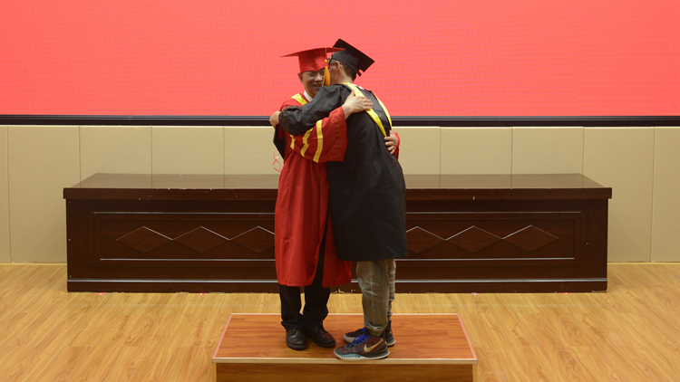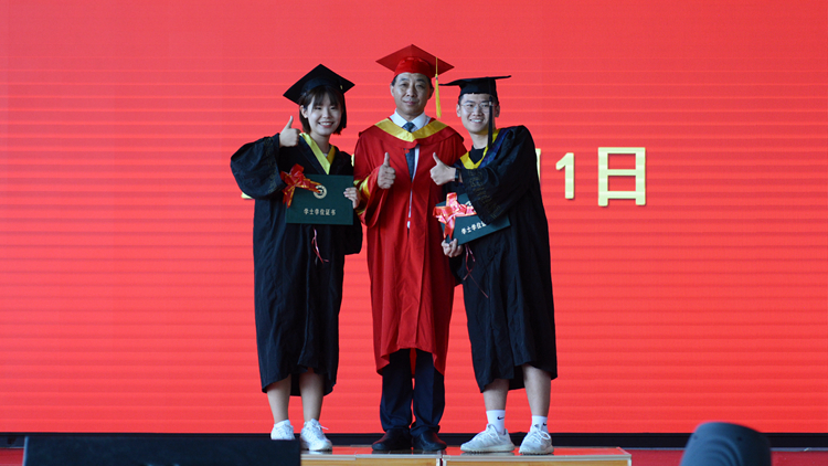 畢業(yè)典禮在校歌《正道直行做棟梁》中圓滿結束,學位授予儀式分別在北新街校區(qū)體育場、圖書館二樓報告廳和丹江校區(qū)體育館同時進行。畢業(yè)生們依次上臺,由校領導范新會、彭虎軍、劉寶盈、王新軍為獲得學士學位的畢業(yè)生正冠撥穗,頒發(fā)學位證書,并與同學們一一合影留念。