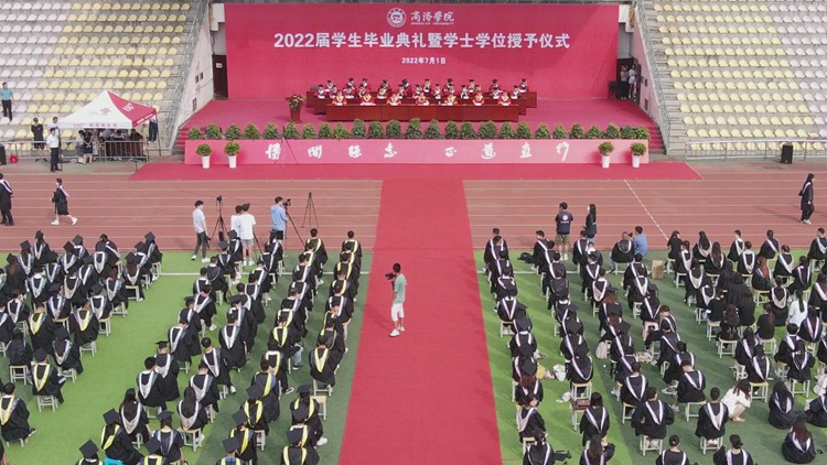 7月1日上午,我校隆重舉行2022屆學生畢業(yè)典禮暨學士學位授予儀式。校領導張志昌、范新會、彭虎軍、劉勇、劉寶盈、王新軍、郭瑾出席典禮。3000余名2022屆畢業(yè)生通過線上線下結合的方式,在北新街校區(qū)和丹江校區(qū)同時參與,同上最后一堂“思政大課”。師長的諄諄教誨、畢業(yè)生代表深情演唱的歌曲、“奉獻基層、服務邊疆”優(yōu)秀畢業(yè)生現(xiàn)場登臺領獎……這場充滿思政元素的畢業(yè)典禮,激發(fā)畢業(yè)生們深懷愛國之心、砥礪報國之志、勇挑強國重任。
