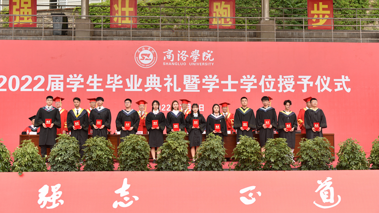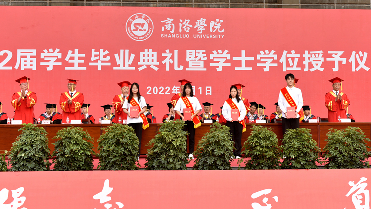 副校長劉寶盈宣讀了商洛學院2022屆畢業(yè)生資格審查通報、學士學位授予決定、教育廳關于表彰2022屆陜西高校優(yōu)秀畢業(yè)生和優(yōu)秀學生干部的通報、商洛學院優(yōu)秀畢業(yè)生表彰決定、商洛學院“奉獻基層、服務邊疆”優(yōu)秀畢業(yè)生表彰決定、商洛學院校友總會聘任2022屆校友聯(lián)絡員通知。思政1801班韓冰等29名同學被授予“省級優(yōu)秀畢業(yè)生”榮譽稱號,思政1801班羅曉妮等111名同學被授予商洛學院2022屆“優(yōu)秀畢業(yè)生”榮譽稱號,思政1802班石鑫等12名同學被評為“奉獻基層、服務邊疆”優(yōu)秀畢業(yè)生,葉少露等101名同學被聘任為2022屆校友聯(lián)絡員。在熱烈的掌聲中,校領導為優(yōu)秀畢業(yè)生代表頒發(fā)了證書,為校友聯(lián)絡員頒發(fā)了聘書。