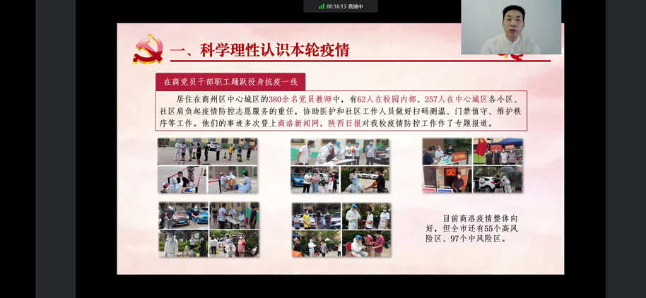 黨委書記張志昌在授課中指出,自疫情發(fā)生以來,學(xué)校深入貫徹落實習(xí)近平總書記關(guān)于疫情防控工作的重要指示精神以及屬地疫情防控工作要求,迅速啟動防控預(yù)案,科學(xué)防控,有力維護(hù)了校園安全穩(wěn)定大局和師生生命安全健康。