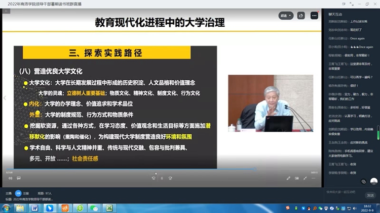 按照省委教育工委、省教育廳統(tǒng)一安排,9月8日至9日,我校105名處級以上領導干部參加了由省委教育工委主辦的2022年全省高校領導干部暑期讀書班。結合當前疫情防控形勢,本次讀書班采用線上視頻會議形式舉行。