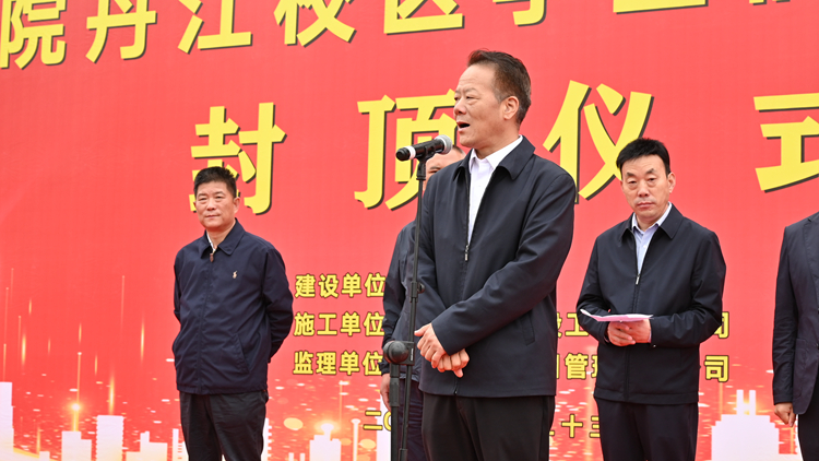 5月23日,我校舉行丹江校區(qū)學生宿舍樓C棟主體封頂儀式。校黨委書記張志昌,校長范新會,副校長劉寶盈,商洛市高新產(chǎn)業(yè)技術開發(fā)區(qū)副主任樊濤,三秦助托教育公益委員會主席黃鵬,陜西億豐建設工程有限公司董事長黃濤,陜西建科項目管理有限公司副總經(jīng)理王敏出席儀式。我校相關部門負責人,師生代表,施工方、監(jiān)理方、參建單位相關人員參加儀式。封頂儀式由黨委副書記彭虎軍主持。