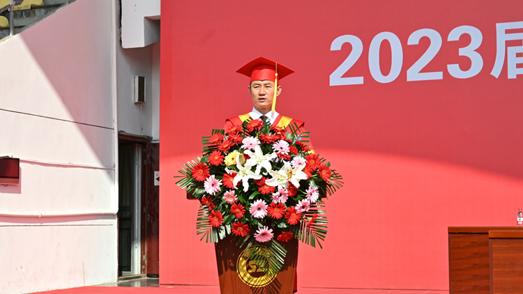校長范新會以《志存高遠勇毅前行做不負時代的“追夢人”》為題發(fā)表了情真意切的講話。他表示,在四年的大學(xué)生活中,同學(xué)們謹遵博聞強志、正道直行校訓(xùn),正心明志、立德修身,努力學(xué)習(xí)專業(yè)知識,踴躍投身社會實踐,豐富了知識,鍛煉了體魄,增長了才干。所有同學(xué)在砥礪奮進中共同見證了學(xué)校在軟科中國大學(xué)排名中的新突破,體驗了校園環(huán)境的新提升,結(jié)識了中外合作辦學(xué)和國際創(chuàng)意課程的新同學(xué),刷新了學(xué)?!盎ヂ?lián)網(wǎng)+”大賽的最高成績。他希望全體畢業(yè)生在未來的人生路途中,牢記青年使命、矢志報效祖國,不負韶華、不負時代,用青春之筆書寫人生的華彩篇章。