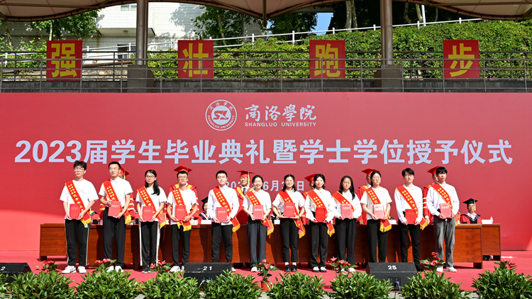 黨委副書記劉勇宣讀了商洛學(xué)院2023屆畢業(yè)生資格審查結(jié)果通報、學(xué)士學(xué)位授予決議、商洛學(xué)院優(yōu)秀畢業(yè)生表彰決定、商洛學(xué)院“奉獻基層 服務(wù)邊疆”優(yōu)秀畢業(yè)生表彰決定、商洛學(xué)院校友總會聘任2023屆校友聯(lián)絡(luò)員通知。思政1901班樊靖茹等79名同學(xué)被授予商洛學(xué)院2023屆“優(yōu)秀畢業(yè)生”榮譽稱號,思政1901班莫桂珍等17名同學(xué)被授予2023屆“奉獻基層 服務(wù)邊疆”優(yōu)秀畢業(yè)生榮譽稱號,馬仁杰等104名同學(xué)被聘任為2023屆校友聯(lián)絡(luò)員。在熱烈的掌聲中,校領(lǐng)導(dǎo)為優(yōu)秀畢業(yè)生頒發(fā)了證書,為校友聯(lián)絡(luò)員頒發(fā)了聘書。