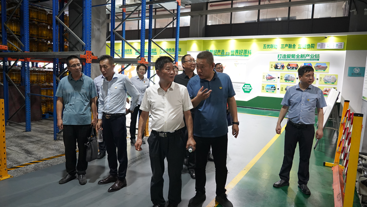 簽約前,范新會一行在劉東萌等人的陪同下參觀了愛菊集團智能化倉庫、米面綜合體、油脂分裝車間、體驗中心和科普館。